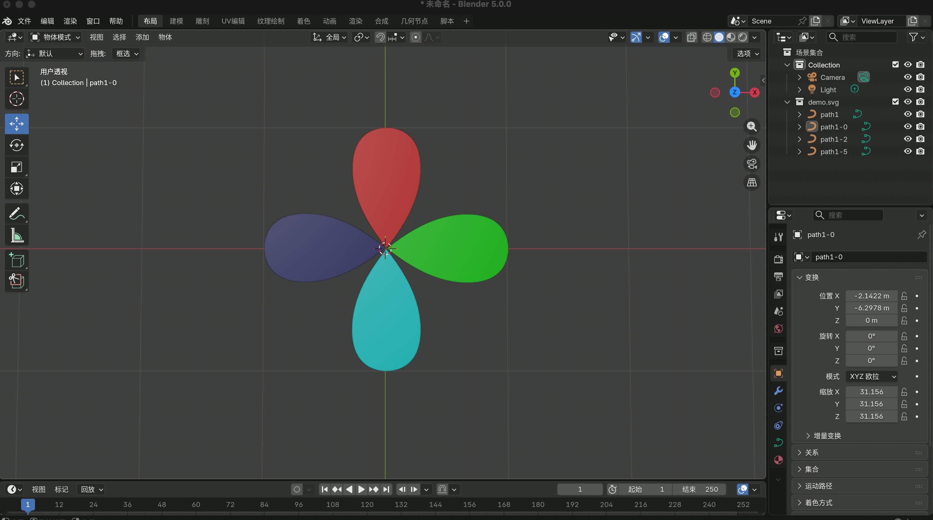 - 打开Blender 导入上面做好的svg文件,调整大小