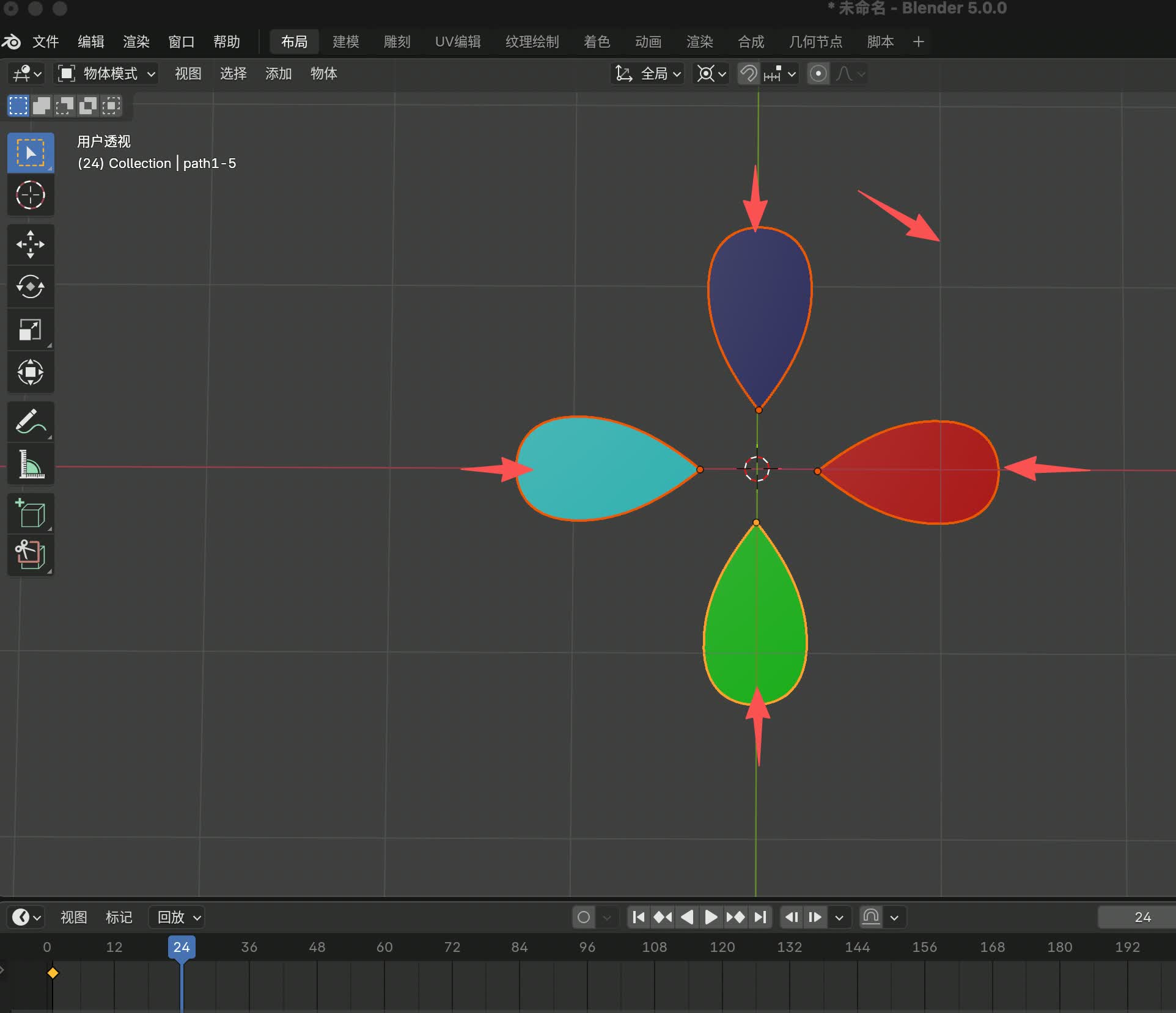 位置+旋转类型的关键帧 - 时间线选中24,整体旋转90度,整体往中间靠拢,插入关键帧
