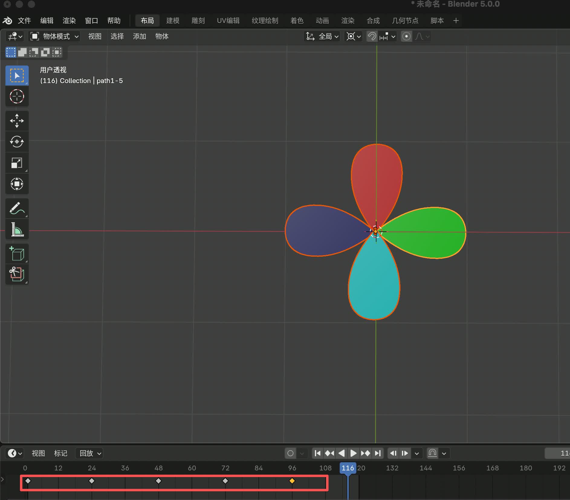 - 重复上面步骤插入3个关键帧,空格键或者下方的播放按钮可以预览效果