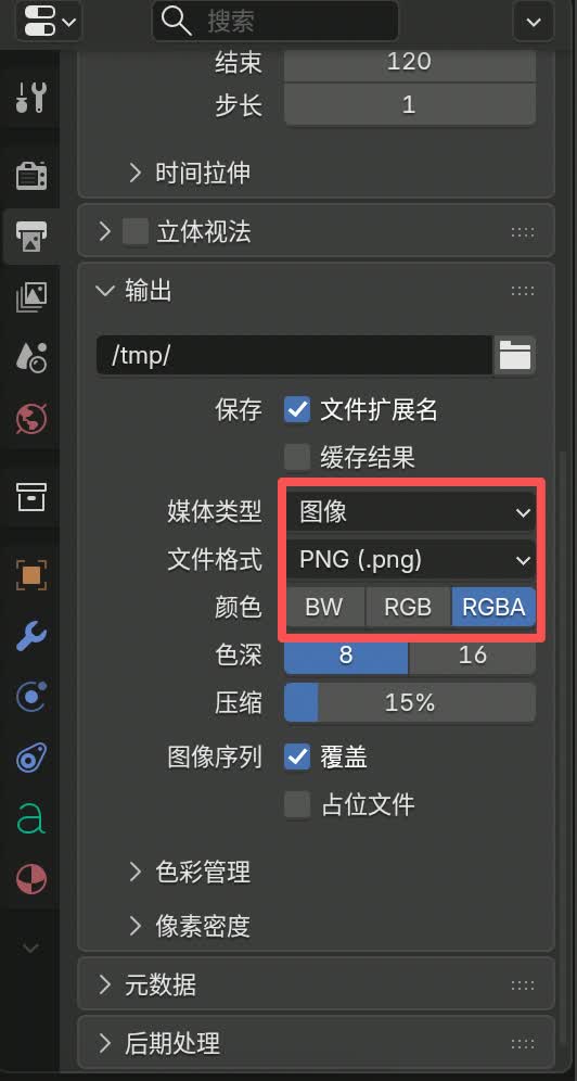 - 输出png图片,输出选择图片,渲染选择动画,生成图片序列