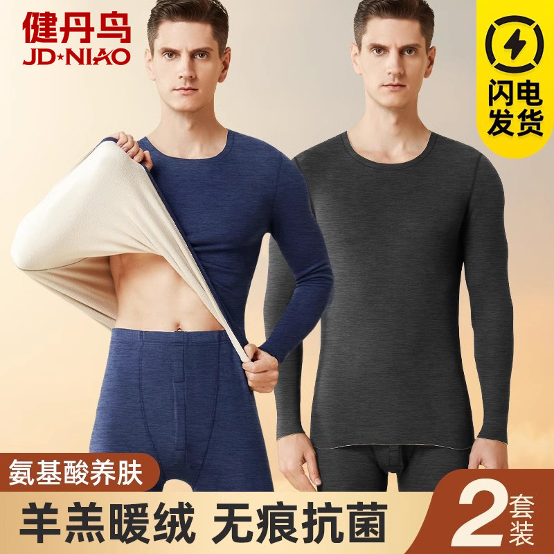 健丹鸟羊羔绒男女士无痕加绒中厚秋衣秋裤打底内穿保暖内衣套装冬